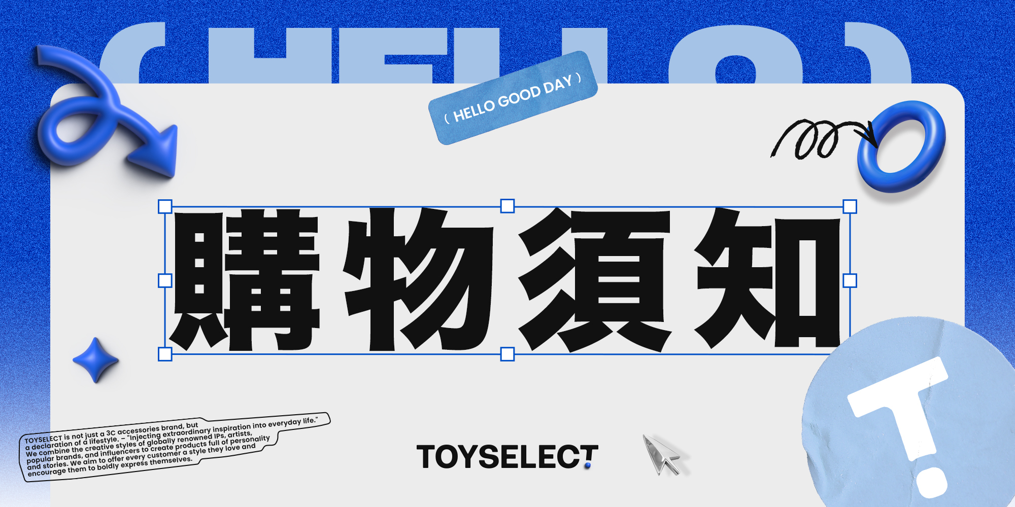 TOYSELECT重視創意與多元,歡迎您自由設計,但同時您亦需遵守相關法律規範,並尊重第三方之智慧財產與人格權。