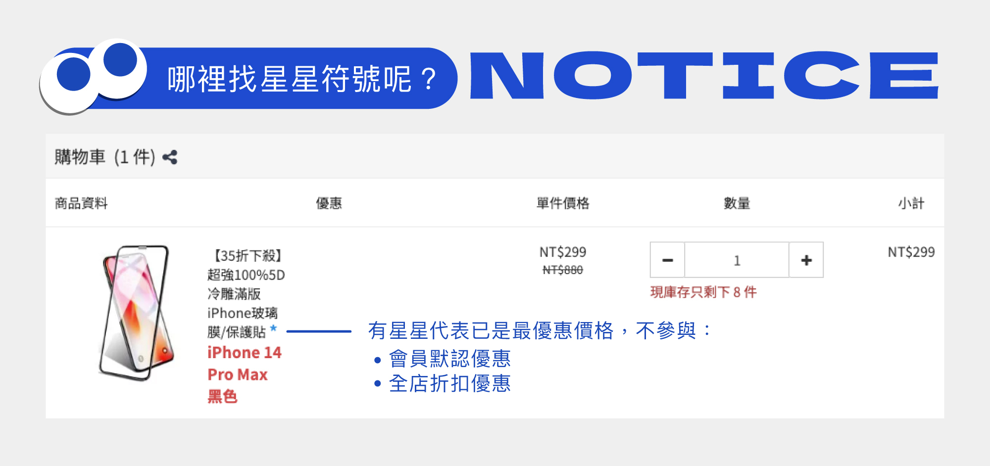 2.購物車內有標示星星的商品不參與全店折扣。
