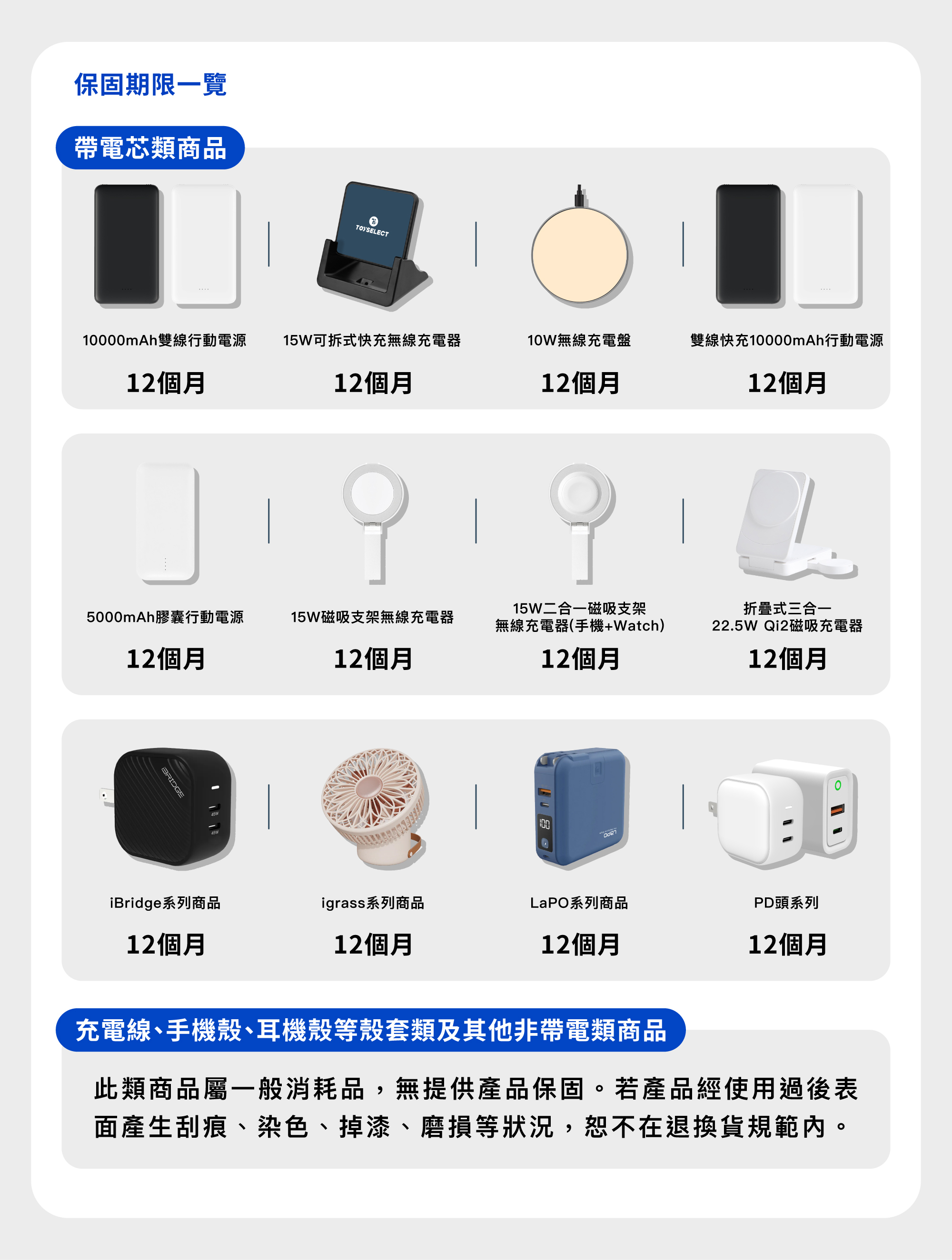 ⮕行動電源、無線充電器、插頭等帶有電芯之商品